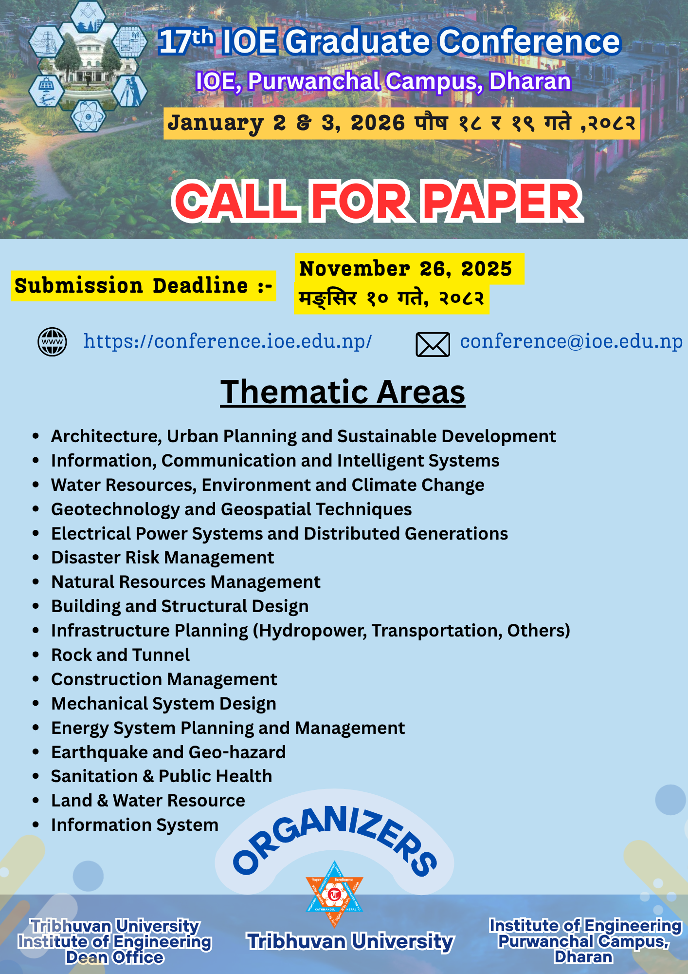 Date : January 2 - 3, 2026 (पौष १८ - १९, २०८२) Venue : Purwanchal Campus, IOE, TU, Dharan, Nepal Mode : Physical + Online (Mixed)